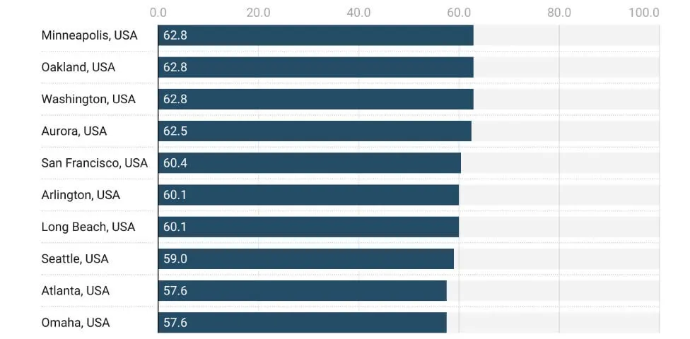 Both the city’s technology infrastructure (87.7 out of 100) and green infrastructure (91.7 out of 100) rank significantly high in comparison to many other cities, with the 8th highest number of publicly accessible EV charging stations (329), the 11th highest per 10,000 people (33.2), and the 8th highest number of ‘Internet of Things’ companies (76) headquartered and operating there.