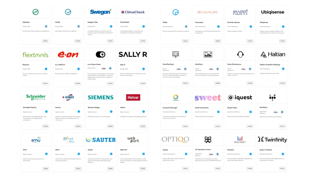 ProptechOS is a cloud-based operating system (OS) for managing building hardware, data, and applications, fully aligned with the RealEstateCore standard. It offers native features like provisioning devices, analyzing data, managing privacy, visualizing 3D buildings, and automating maintenance.
