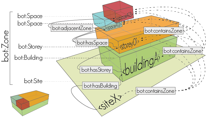 The Building Topology Ontology (BOT) is a minimal OWL ontology for defining relationships between the sub-components of a building.